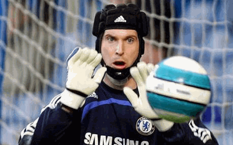 This is the rugby type helmet that former Chelsea goalie, Petr Cech, currently wears to play in games: