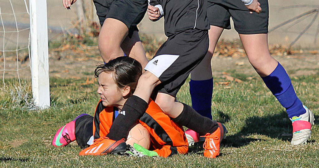 To further understand why a goalie needs to be fully protected, take a look at the following picture, which I took at a U10 girls game.