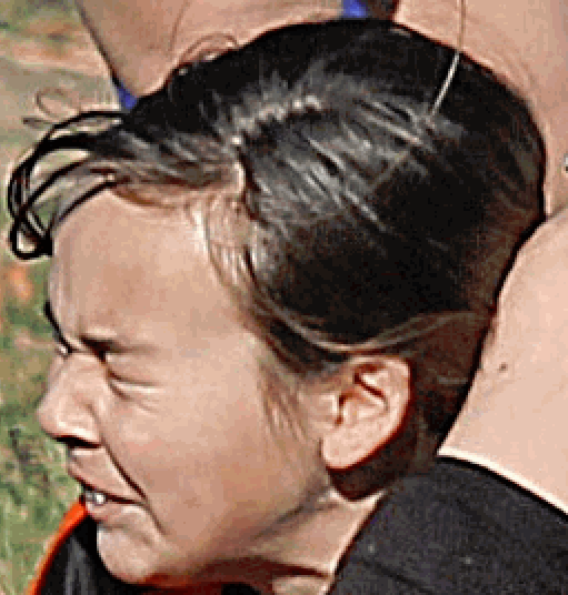 This is the expression on the goalie’s face, eyes squeezed tight, and a pained grimace on her face. This was absolutely not a pleasant experience.